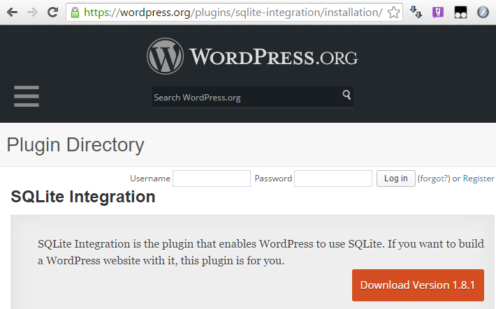This tutorial demonstrates the steps to setup Wordpress v.4.4.2 with Sqlite Integration Plugin v.1.8.1