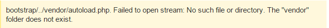 bootstrap/../vendor/autoload.php. Failed to open stream: No such file or directory. The "vendor" folder does not exist.